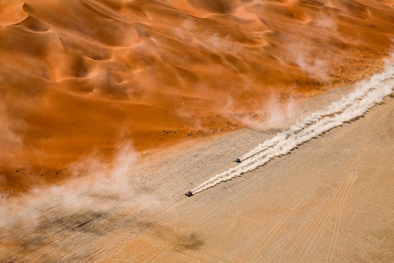 "I'm the official photographer for the Dakar Rally, and there was one moment last year that really brought tears to my eyes. It's moments like that when you want to thank God for all of it. We were chasing one car, flying low in the helicopter, and I was hanging outside in a harness. We were moving at high speed, going between big rocks. We came around one curve and I saw people climbing on the rocks, above and below us. I could hear them cheering. It was all very emotional. The adrenaline makes you want to keep clicking because you're so excited about what's happening and you don't want to miss anything."